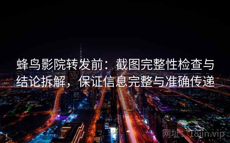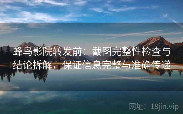 在蜂鸟影院分享信息时,您是否曾担心所转发的内容是否完整、准确?这其实是一个非常重要的问题,因为任何信息的不完整或不准确都可能导致误解,甚至引发不必要的争议。因此,在转发前,我们应该采取几个步骤来确保信息的准确性和完整性。本文将详细介绍如何在转发前先检查截图,并将结论拆解成两步(读前先对拍),从而保证您的信息传达无误,内容完整。