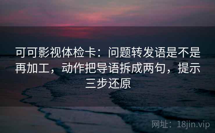 在当今多元化的媒体环境中,如何提升影视剧的叙事质量和观众的参与度成为了每一位创作者的重要课题。可可影视体检卡作为一种新兴的剧本分析工具,引起了广泛关注。它不仅帮助创作者发现剧本中的问题,还提供了一系列有效的修改建议。本文将深入探讨可可影视体检卡中的一个常见问题:问题转发语是否再次加工,以及如何将动作导语拆成两句,提示三步还原。